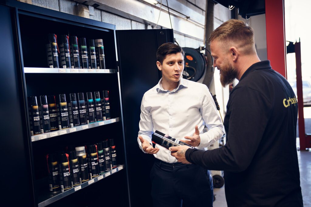 Otte særligt uddannede forbrugskonsulenter er sendt på hjul på kryds og tværs af Danmark. Konsulenterne har et dybt kendskab til autobranchen, fungerer som personlige rådgivere for værkstederne og tilbyder direkte støtte i alt fra kemihåndtering til forbedring af dagligt forbrug af varer som møtrikker, olie og værktøj. Den tætte kontakt med værkstederne sikrer en løbende udveksling af information om de nyeste produkter og teknologier, som kan forbedre effektiviteten og lønsomheden i værkstederne.